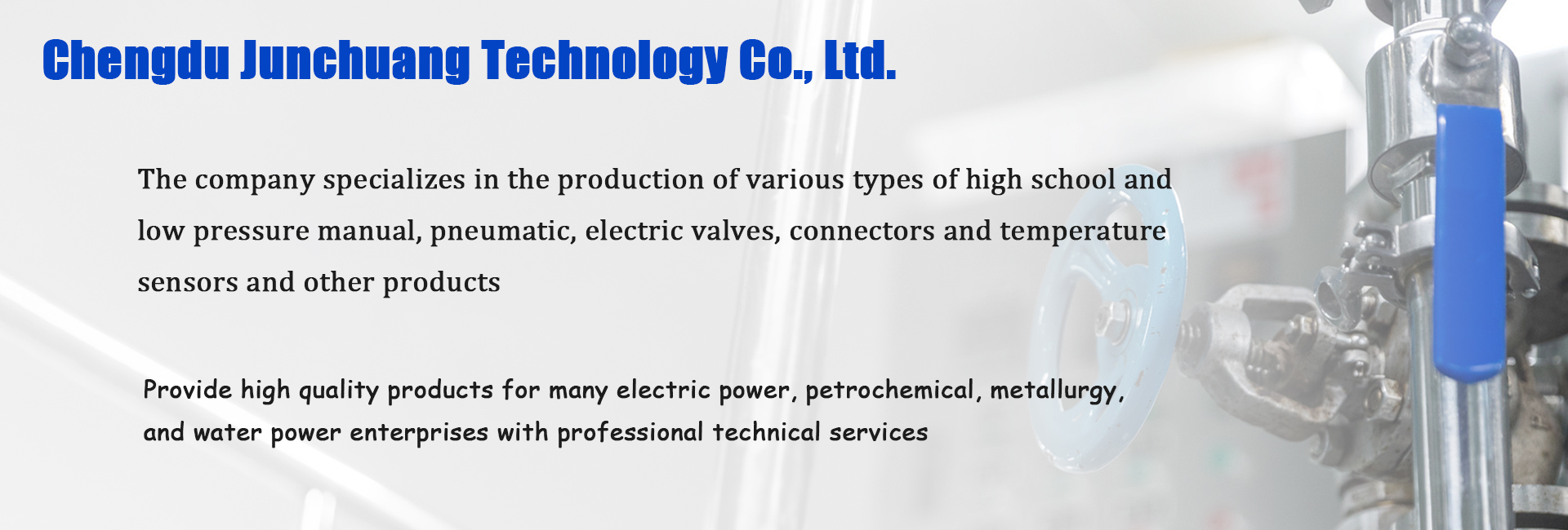 The company is located in the beautiful country of Tianfu - Chengdu. After years of development, it has now developed into an integrated enterprise with Chengdu Junchuang Technology Co., Ltd. as the sales center and Junchuang Valve Technology (Yancheng) Co., Ltd. as the production, the company specializes in the production of various types of high and medium-low pressure manual, pneumatic and electric valves, fittings and temperature sensors, etc., and owns a complete and scientific quality management system of ISO9001, and its products are widely used in the petroleum, chemical, metallurgy, e...
